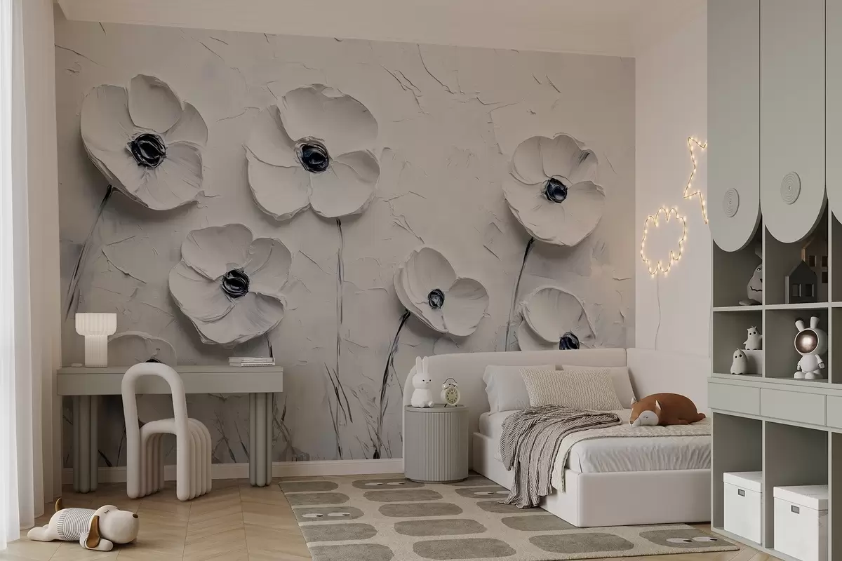 Fototapetes Eleganti pelēki ziedi ar otas triepienu imitāciju Nr. w08632