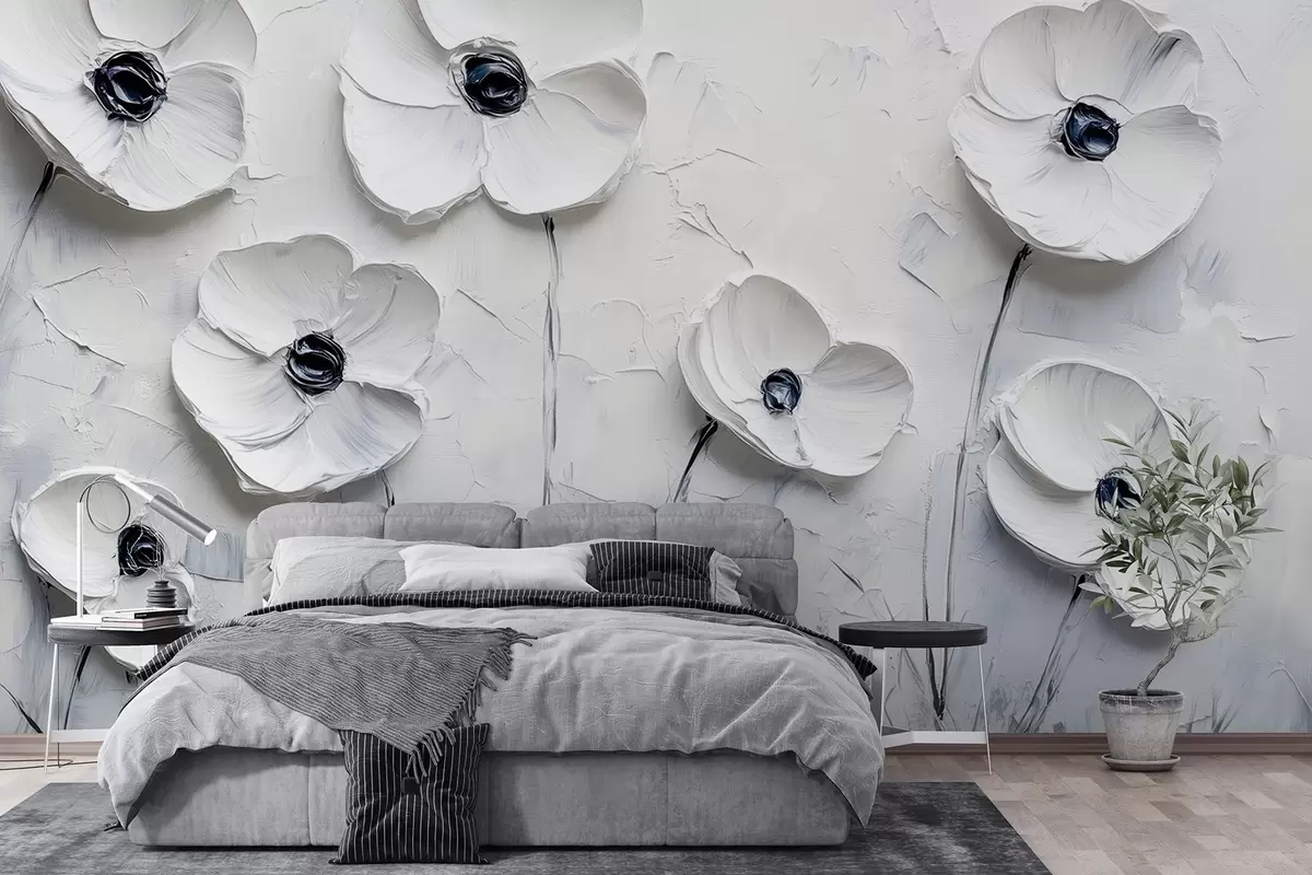 Fototapetes Eleganti pelēki ziedi ar otas triepienu imitāciju w08632