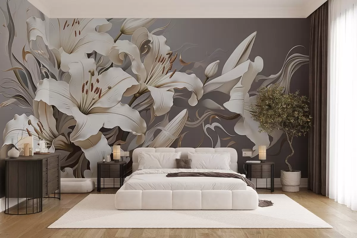 Fototapetes Izsmalcinātas baltas lilijas pasteļtoņos Nr. w08633v1