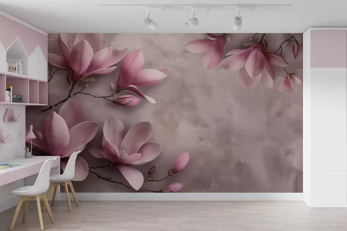 Fototapetes Delikātas rozā magnolijas uz betona sienas Nr. w08636