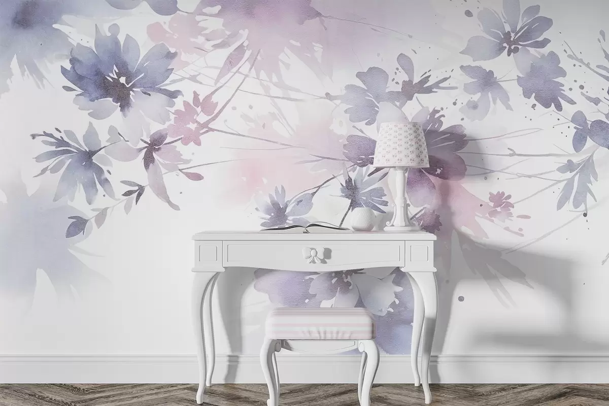 Fototapetes Maigas, pasteļkrāsas, abstraktas tekstūras ziedi ar izplūdušu fonu, kas rada sapņainu, ēterisku atmosfēru Nr. w08645