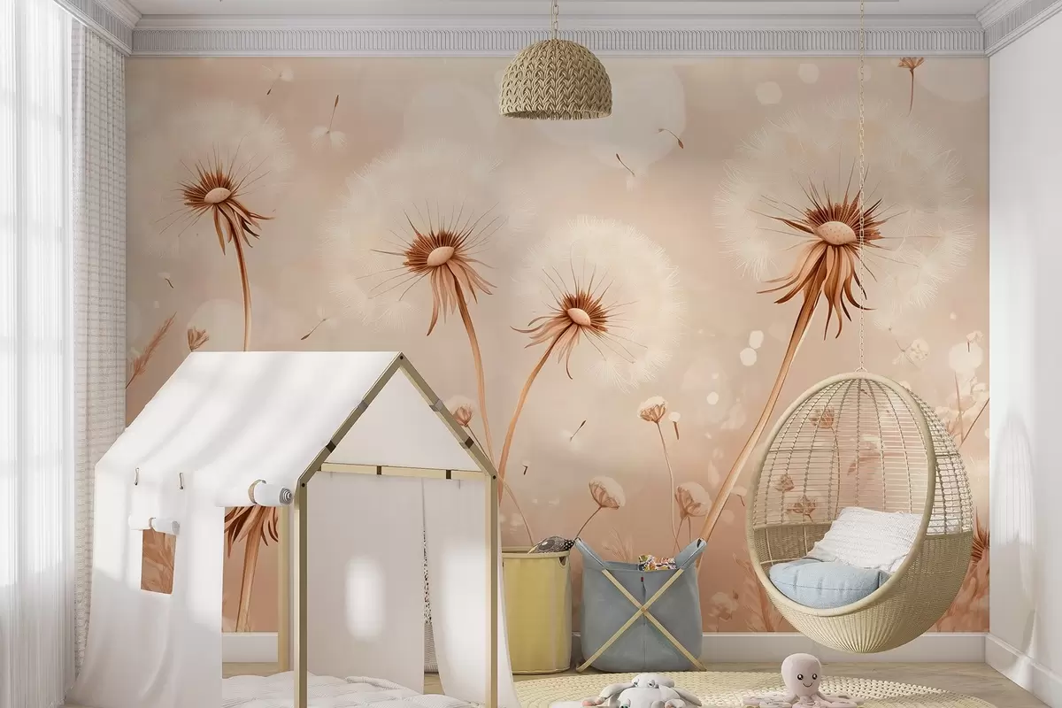 Fototapetes Elegantas pienenes un savvaļas puķes glezniecības stilā siltos toņos Nr. w08657