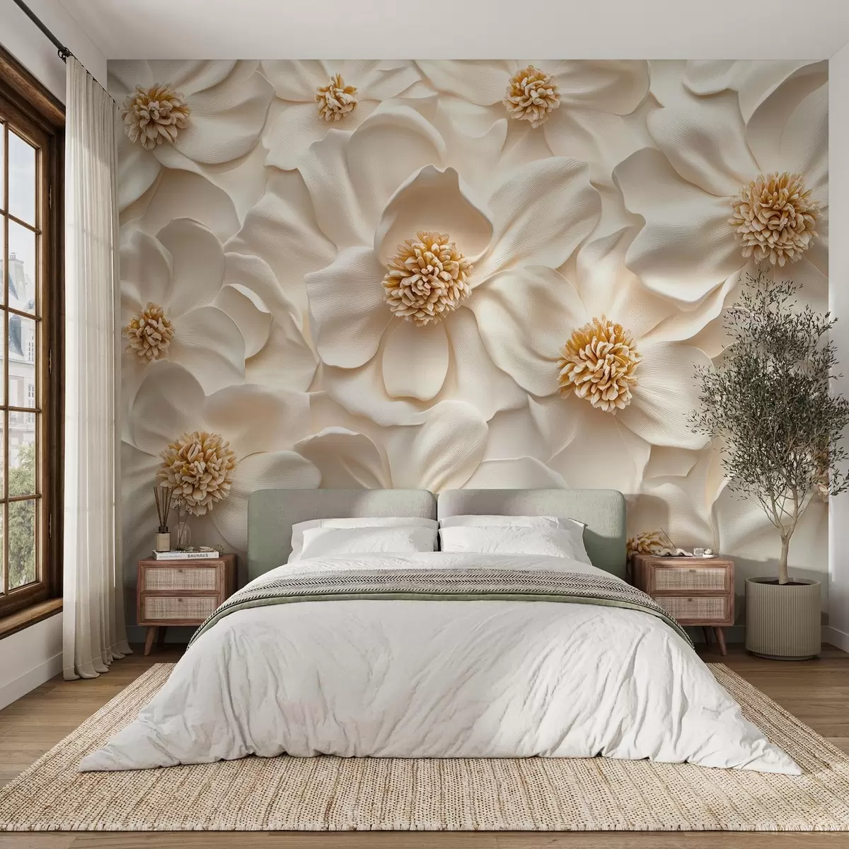 Fototapetes 3D smilškrāsas ziedu kompozīcija ar dzelteniem akcentiem Nr. w08691