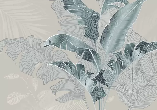 Fototapetes Harmoniska tropu lapu kompozīcija smilškrāsas un brūnā krāsā ar detalizētu līniju darbu Nr. w08698