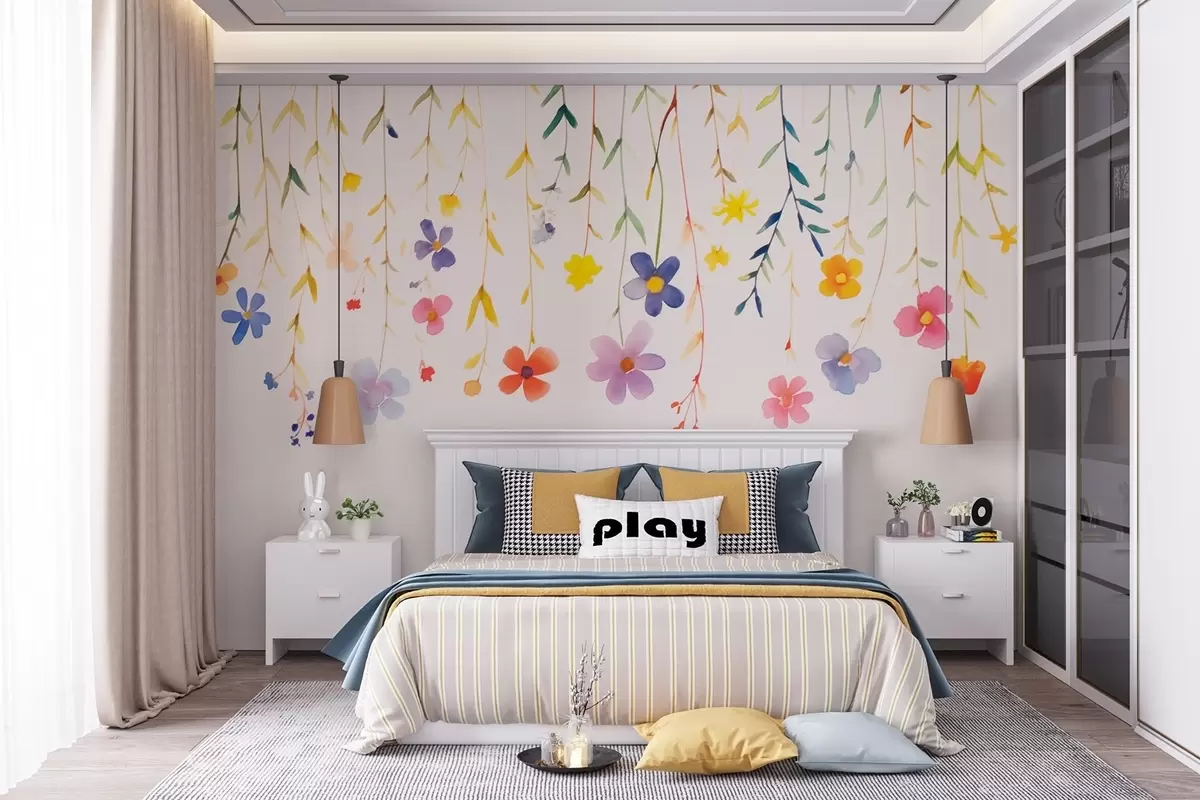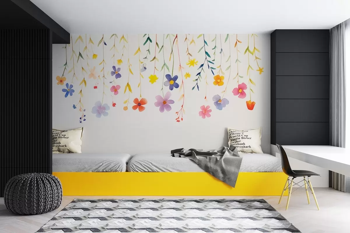 Fototapetes Savvaļas ziedi akvareļu stilā, vienkārši un krāsaini Nr. w08851