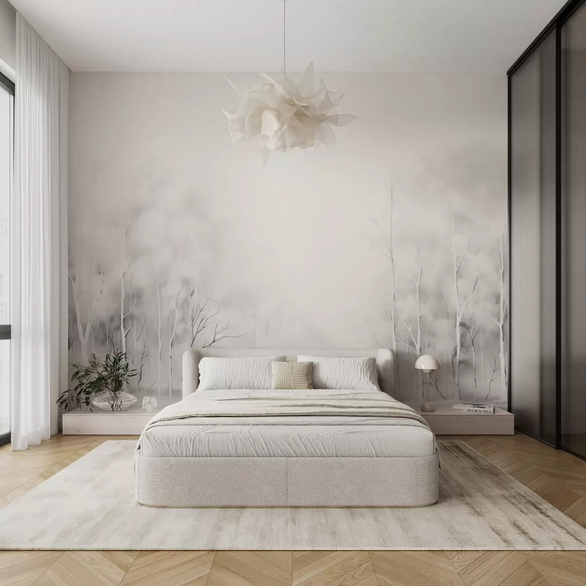 Fototapetes Koki miglā akvareļu stilā uz silta fona Nr. w08875