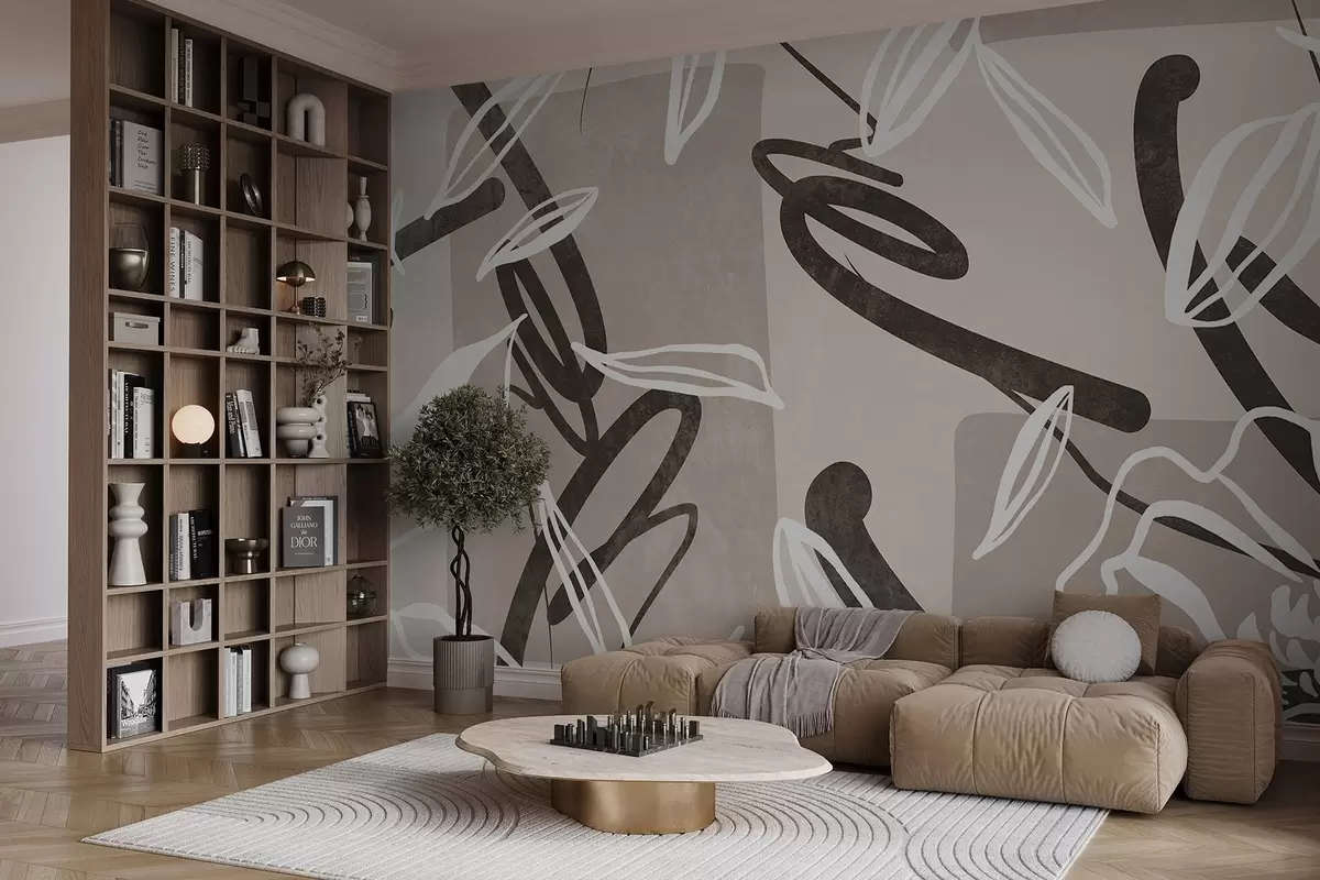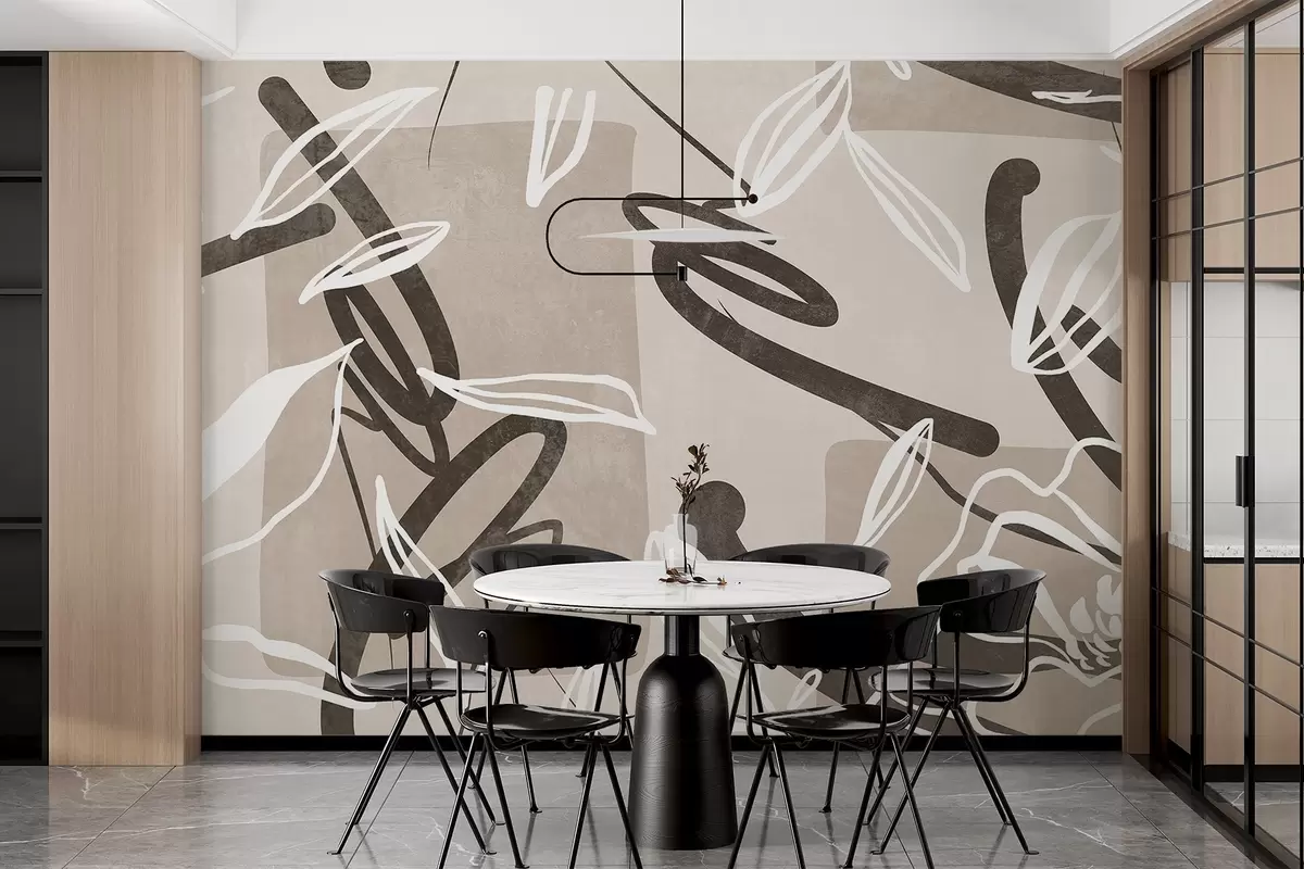 Fototapetes Abstrakts fakturēts moderns un minimālisma dizains ar ziedu elementiem neitrālā bēša krāsu paletē Nr. w08888