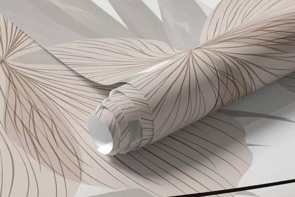 Fototapetes Tropu lapas maigās pasteļkrāsāsās, gaiši zaļā, gaiši rozā un gaiši brūnā krāsā, vertikālas līnijas fonā Nr. w08892