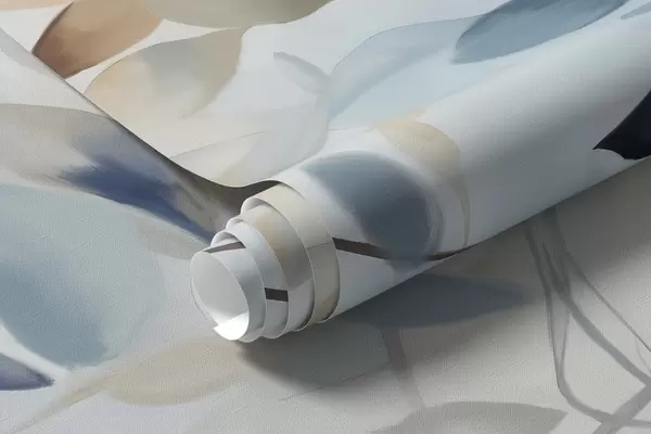 Fototapetes Zilu un brūnu toņu zilas un brūnas krāsas zari ar lapām, gaišs fons, mīksts un maigs, akvareļu stils Nr. w08900