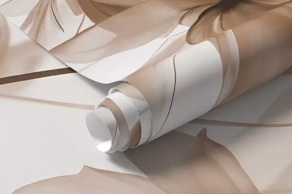 Fototapetes Smilškrāsas ziedi ar caurspīdīgām ziedlapiņām, kas karājas no zara, smilškrāsas un balta, minimālisma modernās mākslas kompozīcija w08911v1