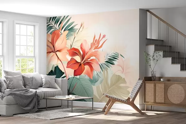 Fototapetes Tropu ziedi ar zaļām lapām Nr. w08938