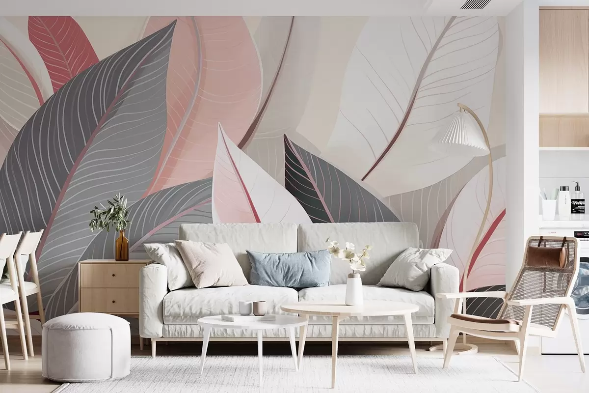 Fototapetes Lapu tuvplāns pelēkos un rozā toņos Nr. w08944v1