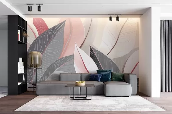 Fototapetes Lapu tuvplāns pelēkos un rozā toņos Nr. w08944v1