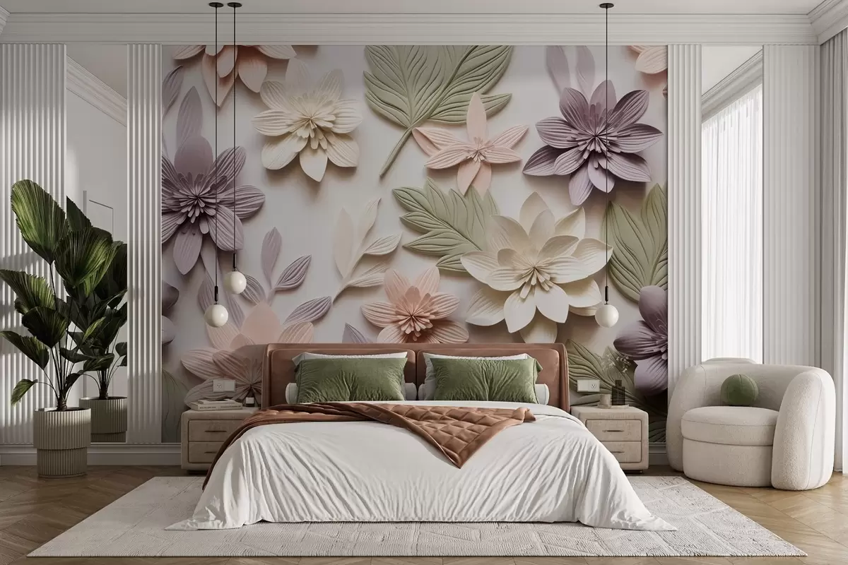 Fototapetes 3D ziedu reljefs papīra kompozīcijas formā Nr. w08958