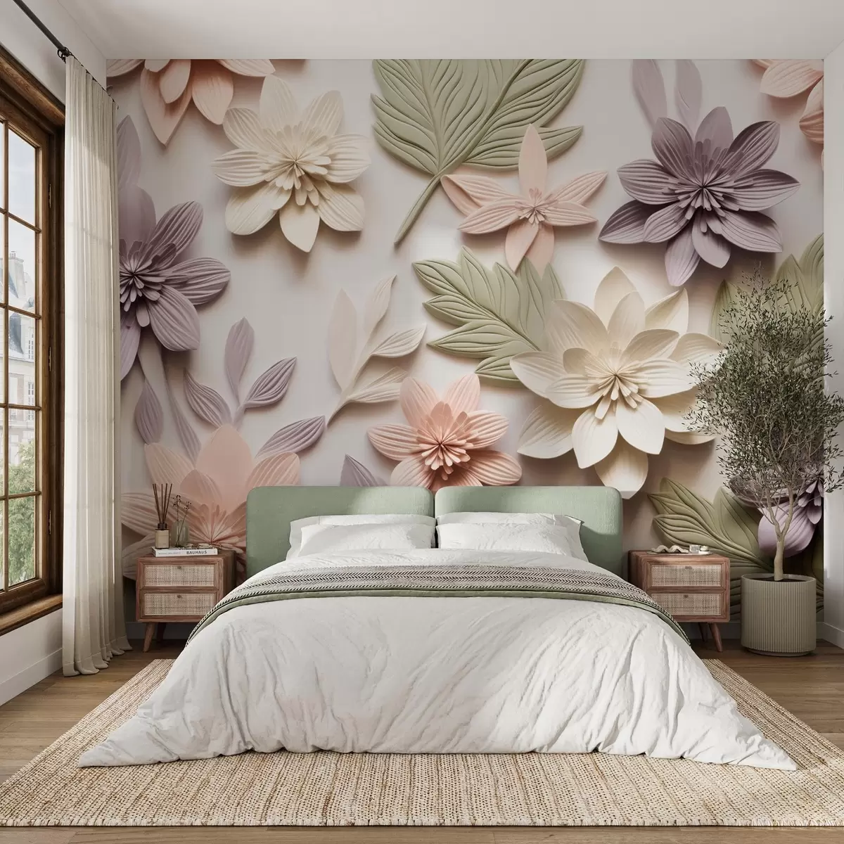 Fototapetes 3D ziedu reljefs papīra kompozīcijas formā Nr. w08958