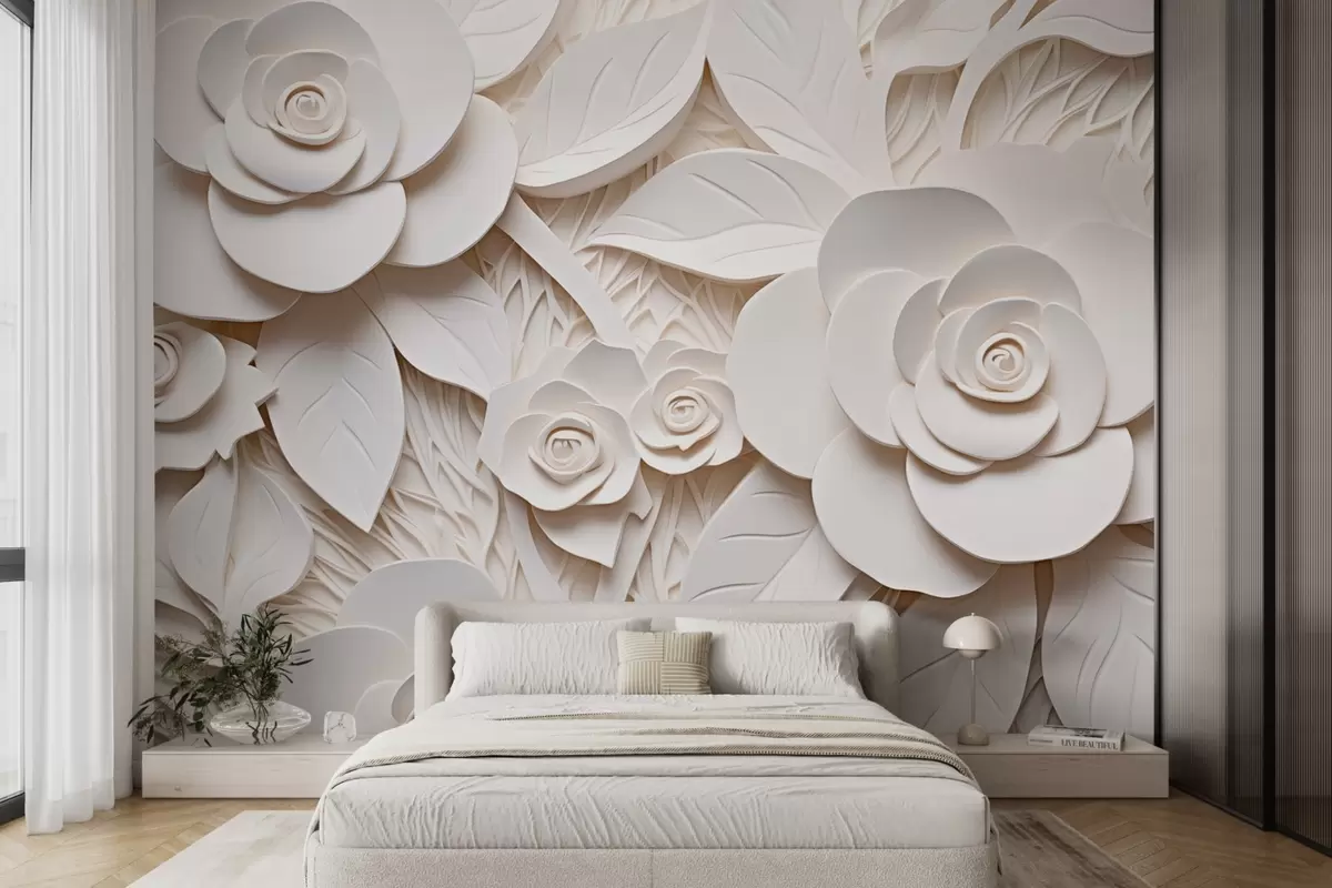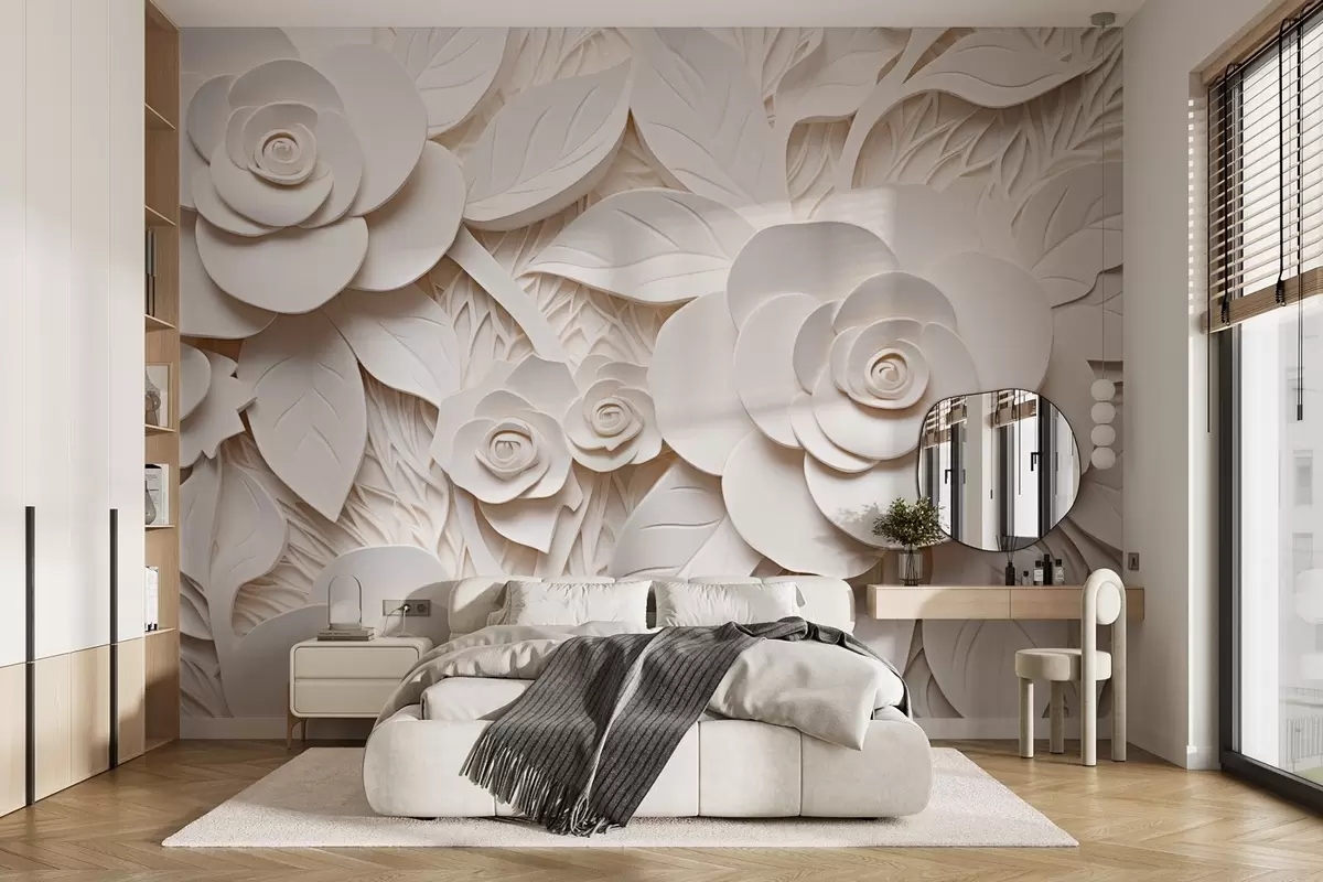 Fototapetes 3D baltas tilpuma rozes Nr. w08963