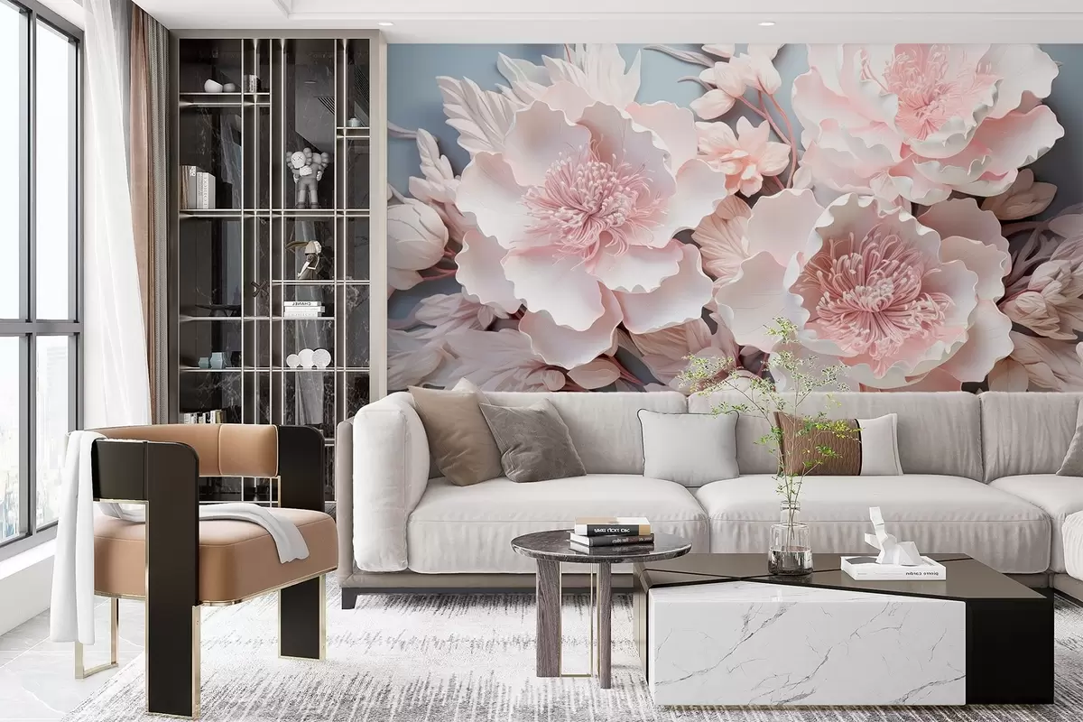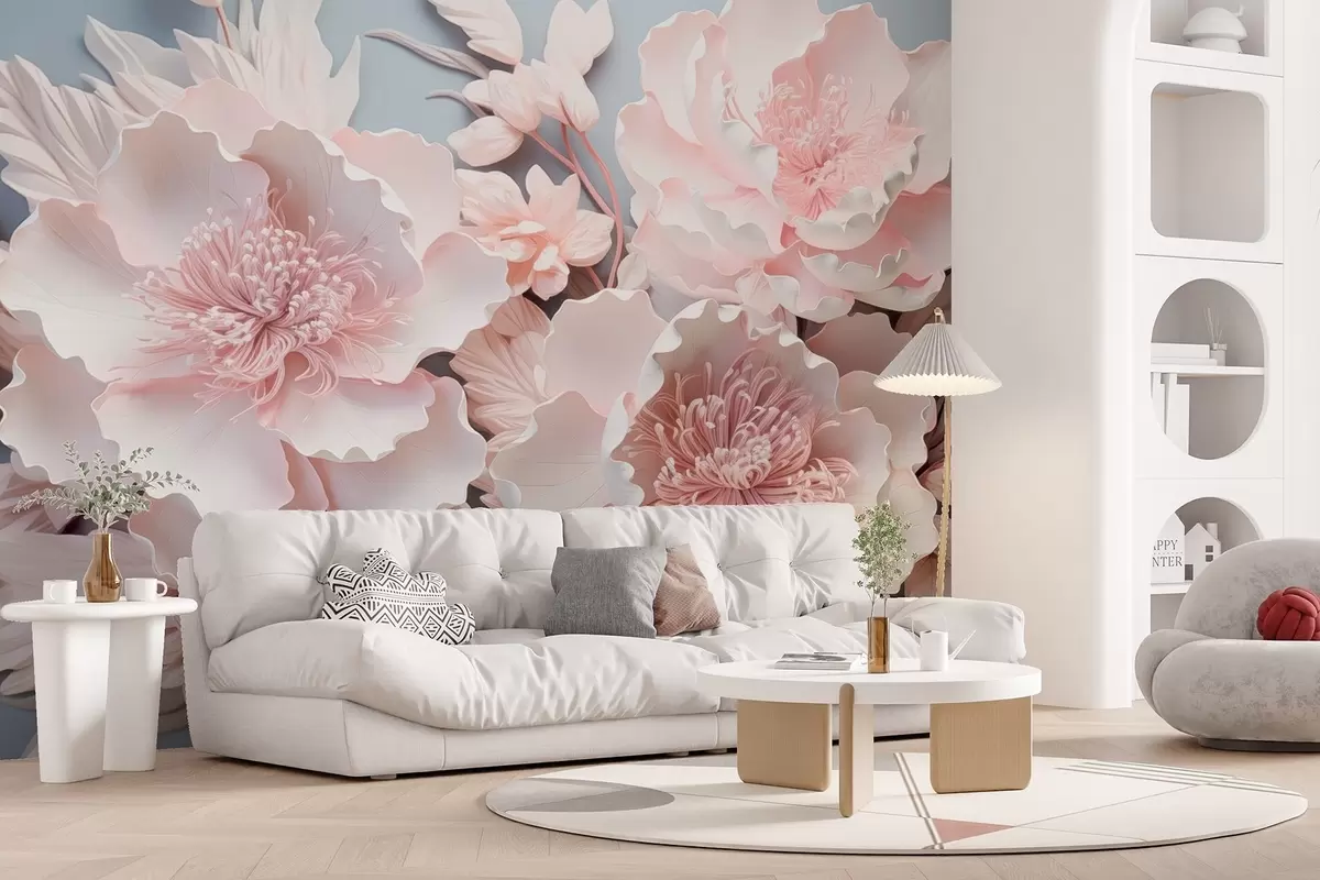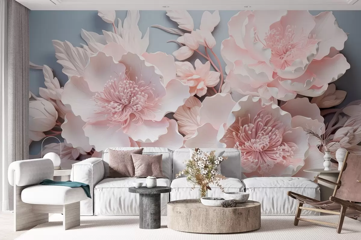 Fototapetes Apjomīgi rozā ziedi maigos toņos Nr. w08988
