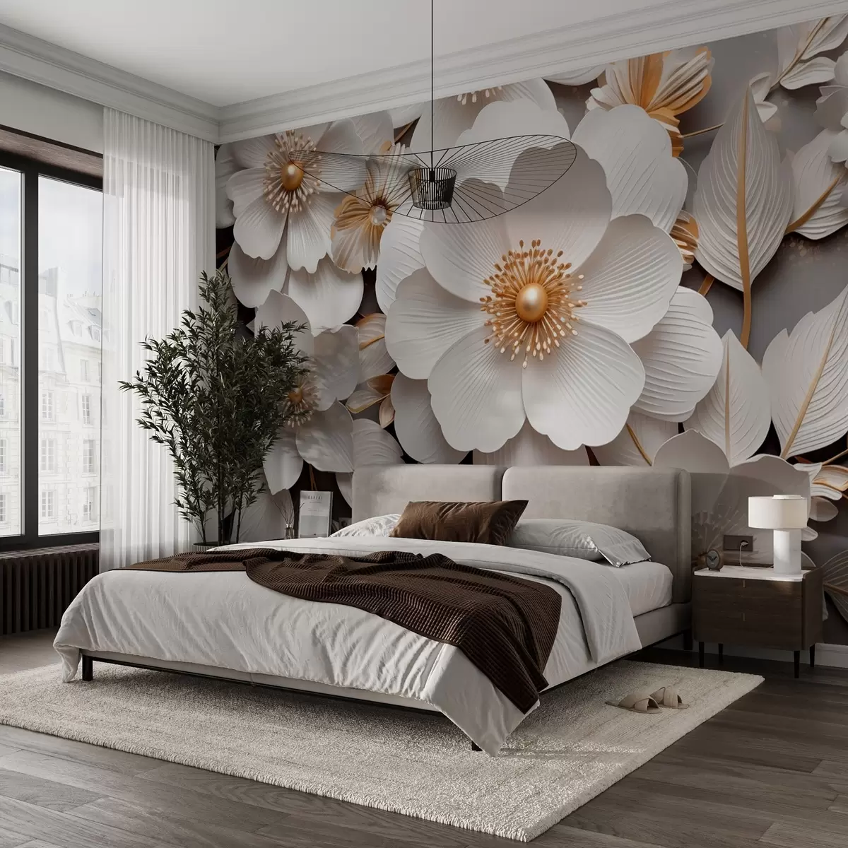 Fototapetes 3D ziedi origami stilā dzeltenpelēkos toņos Nr. w08993