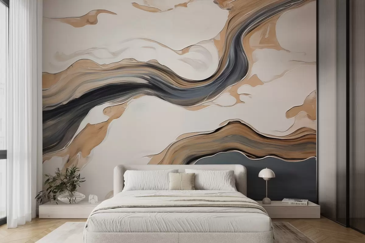 Fototapetes Brūni pelēkas svītras viļņu formā Nr. w09001