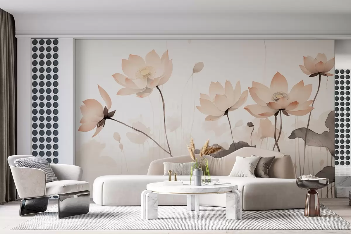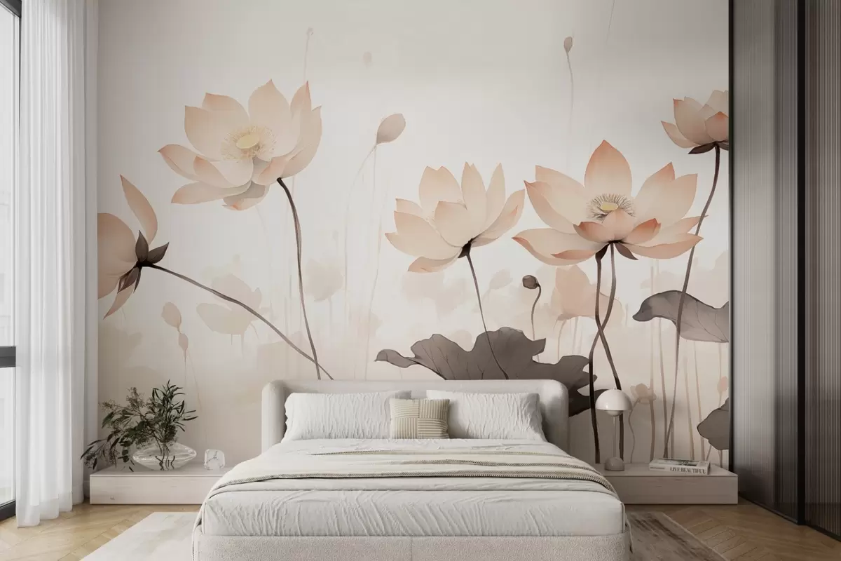 Fototapetes Akvareļu stila ūdens lilijas maigos gaišos toņos Nr. w09035