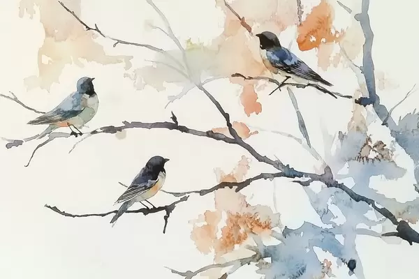 Fototapetes Putni uz koku zariem akvareļu stilā Nr. w09064