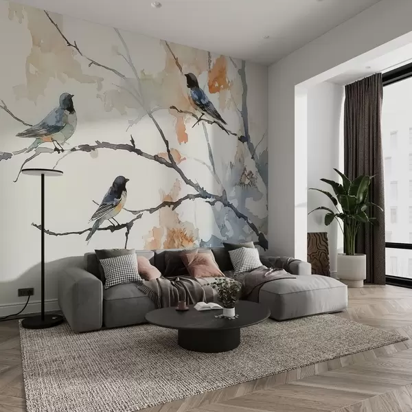 Fototapetes Putni uz koku zariem akvareļu stilā Nr. w09064