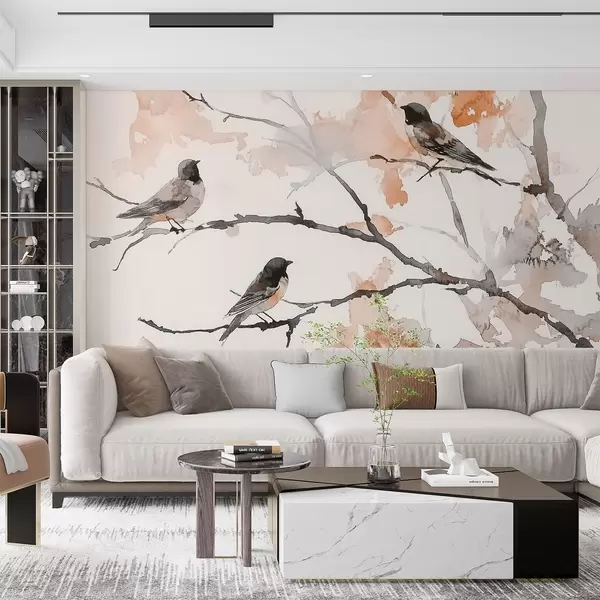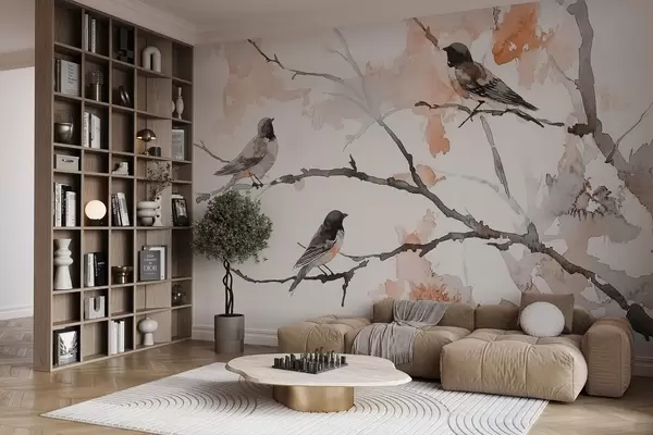 Fototapetes Putni uz koku zariem akvareļu stilā Nr. w09064v2