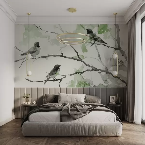 Fototapetes Putni uz koku zariem akvareļu stilā Nr. w09064v3