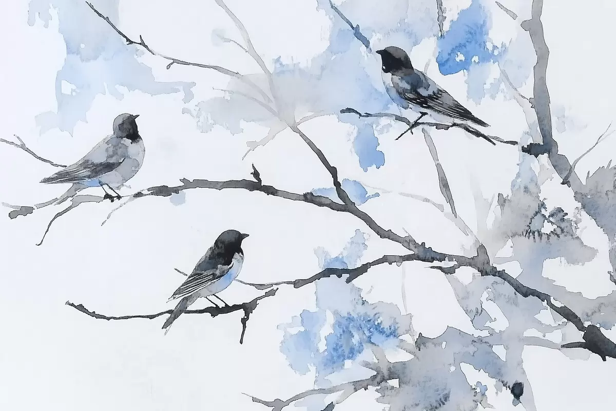 Fototapetes Putni uz koku zariem akvareļu stilā Nr. w09064v4