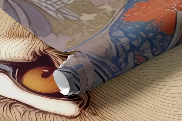 Fototapetes Lauva daudzu ziedu ieskautā Alphonse Mucha stilā Nr. w09073