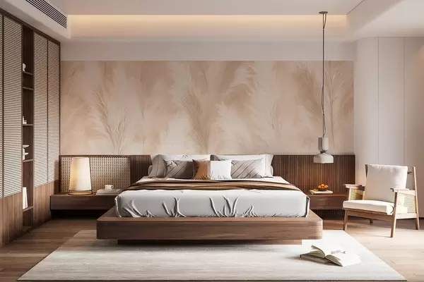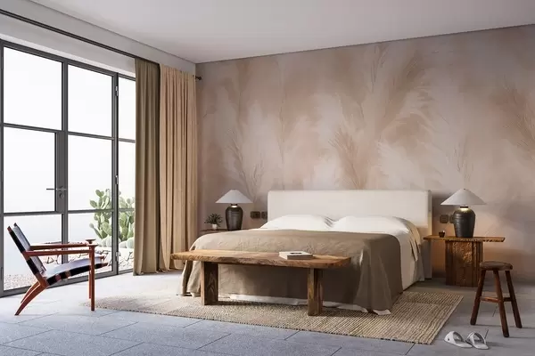 Fototapetes Pampasa zāle bēšos un rozā toņos w09077