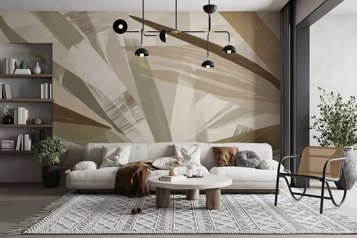 Fototapetes Abstraktas lapas zaļos un bēšos toņos Nr. w09091