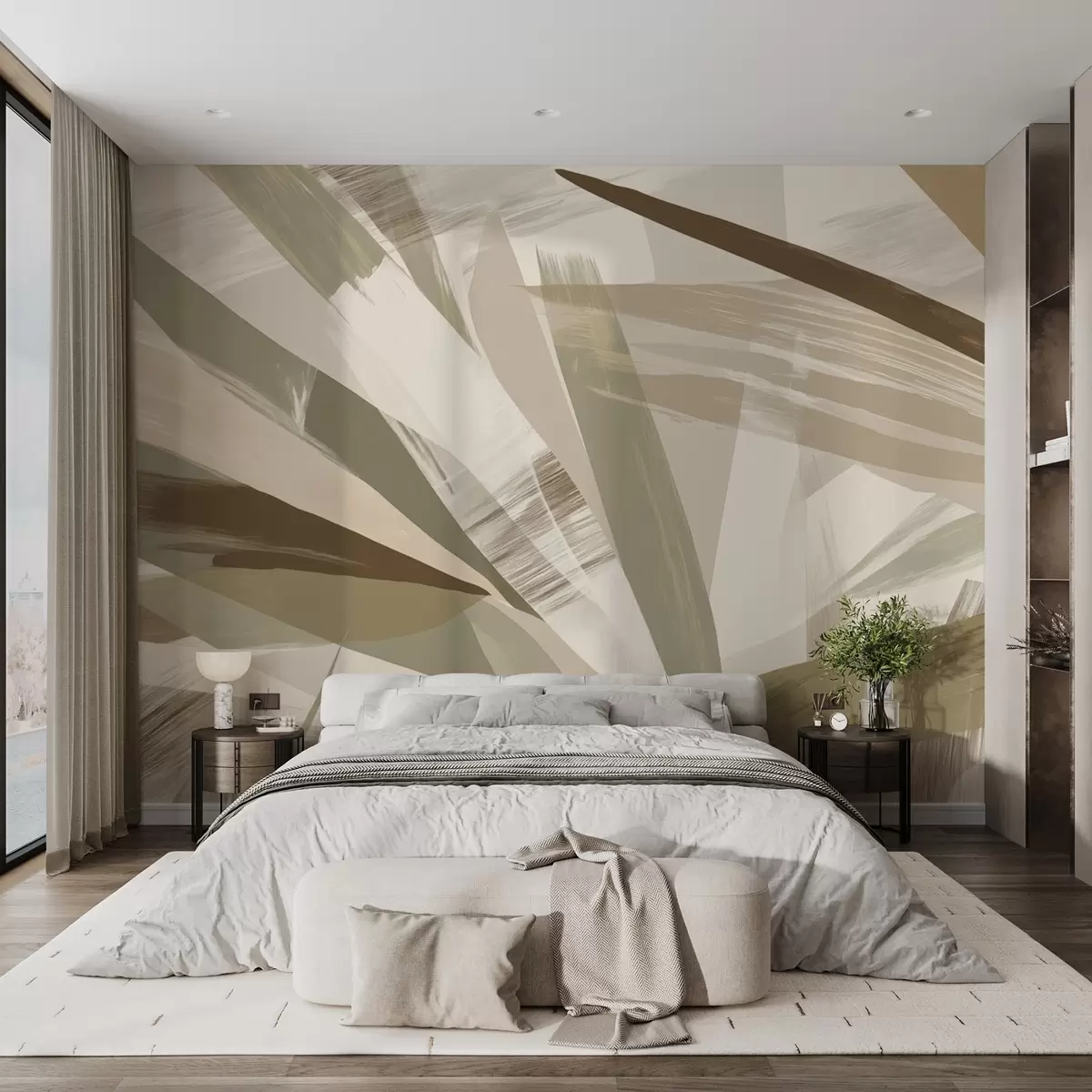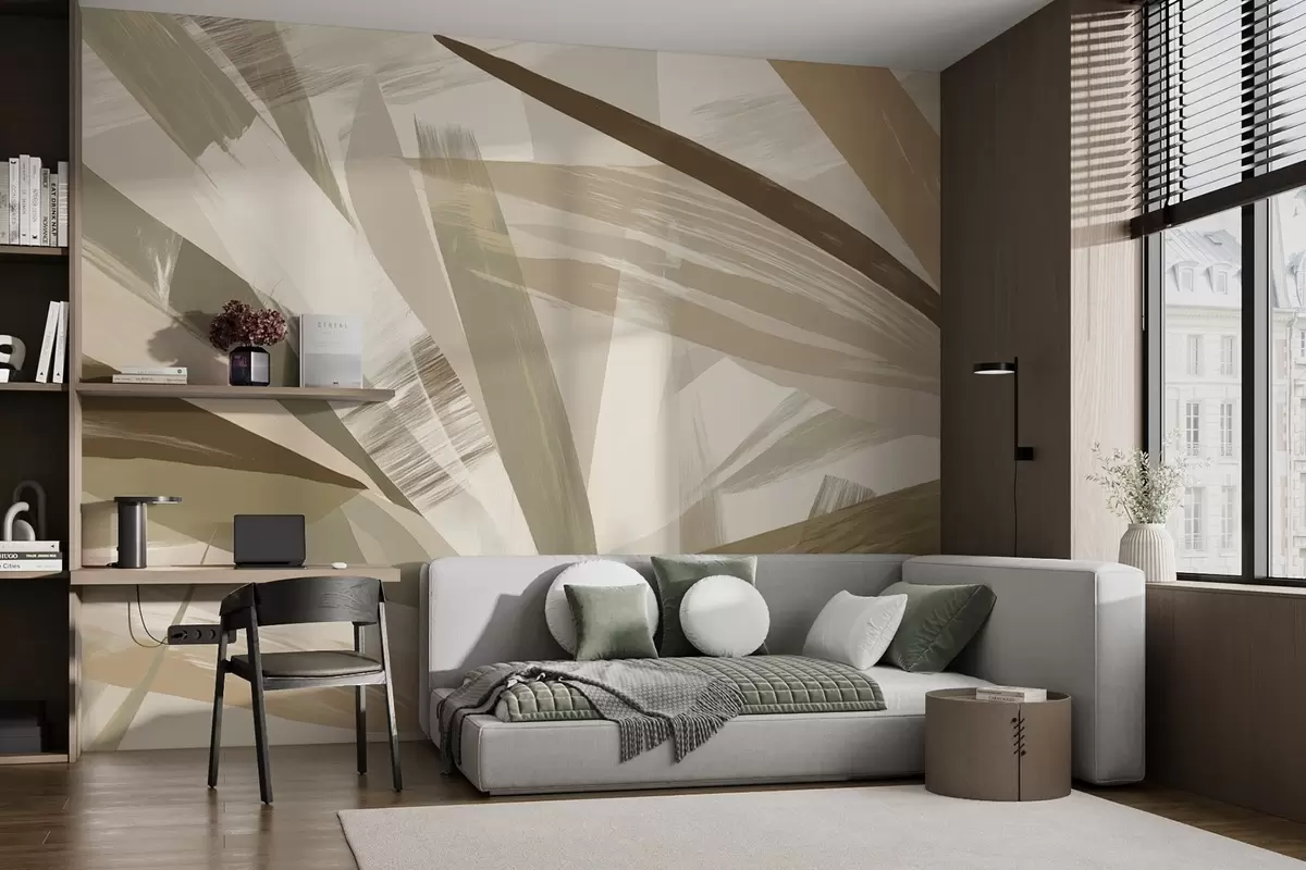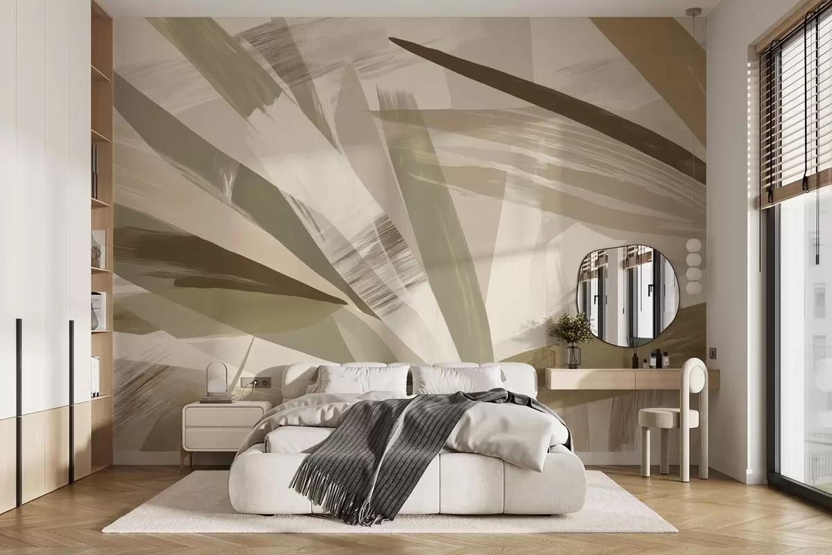 Fototapetes Abstraktas lapas zaļos un bēšos toņos Nr. w09091