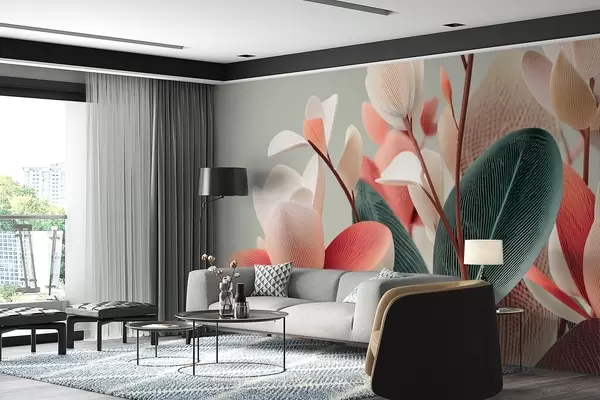 Fototapetes Teksturēti ziedi un lapas pasteļtoņos un zaļos toņos Nr. w09094