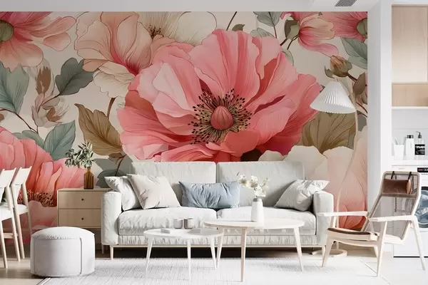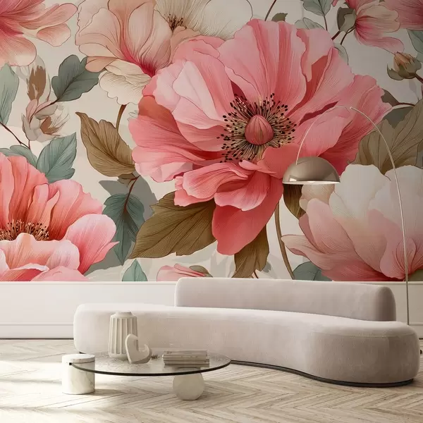 Fototapetes Delikātas magones ar lapām sarkanīgi rozā toņos Nr. w09100
