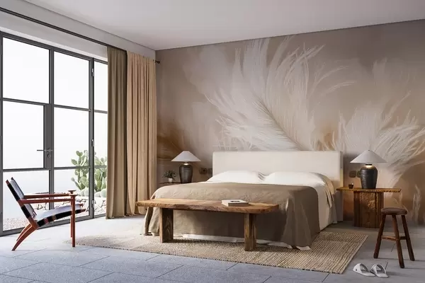 Fototapetes Lidojošas gaisīgas spalvas uz bēša fona Nr. w09102
