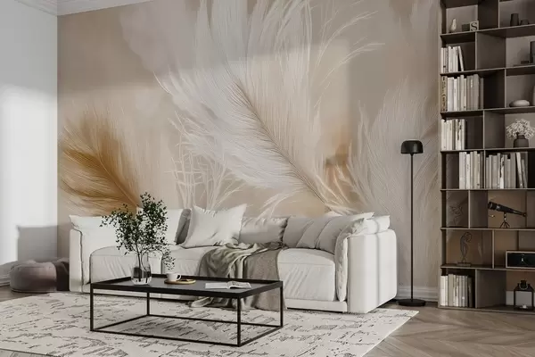 Fototapetes Lidojošas gaisīgas spalvas uz bēša fona Nr. w09102