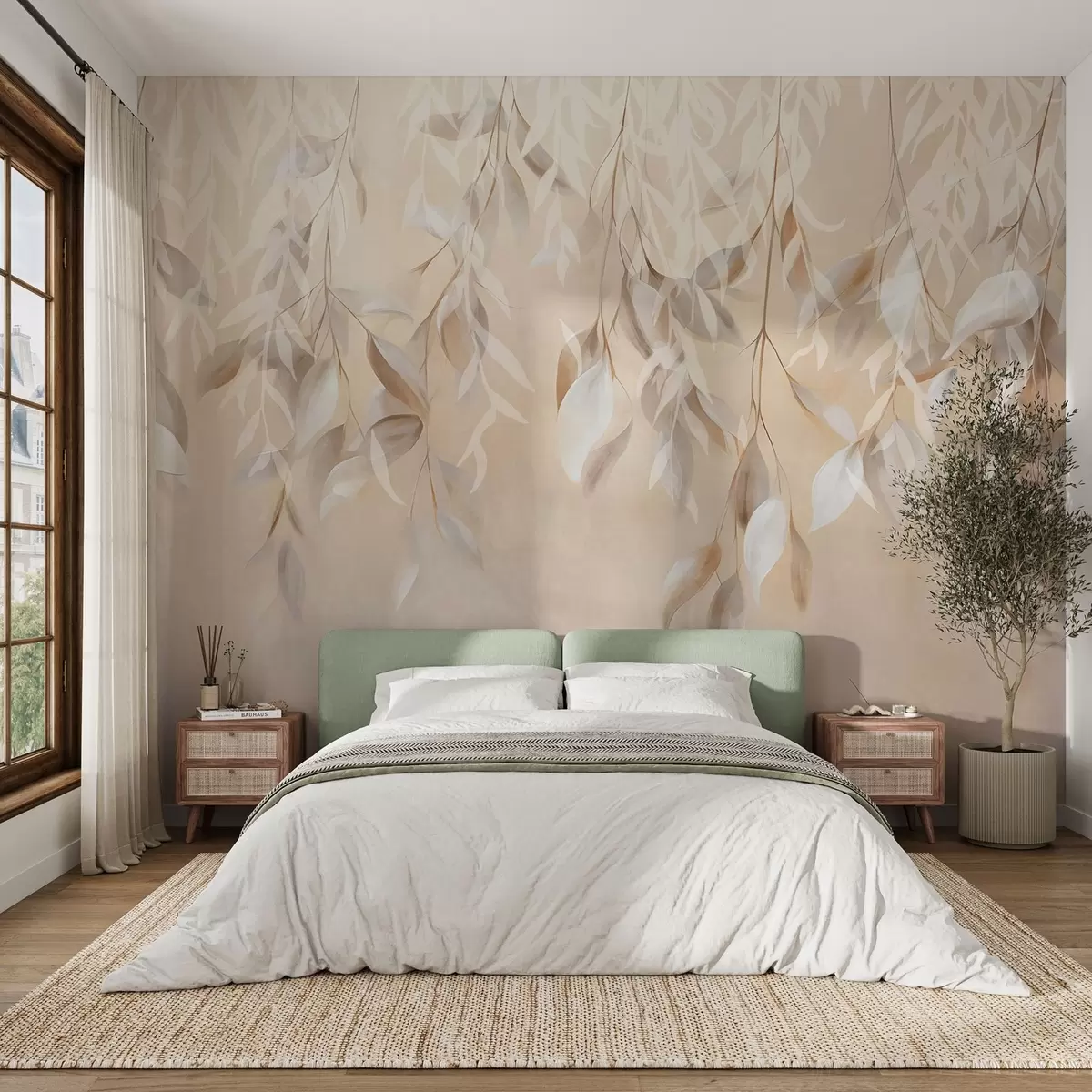 Fototapetes Piekarināmas tekstūras baltas un smilškrāsas lapas ar maigu krāsu paleti, persiku, pelēku un baltu maigu fonu Nr. w09136