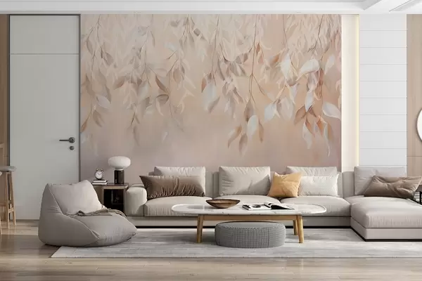 Fototapetes Piekarināmas tekstūras baltas un smilškrāsas lapas ar maigu krāsu paleti, persiku, pelēku un baltu maigu fonu Nr. w09136