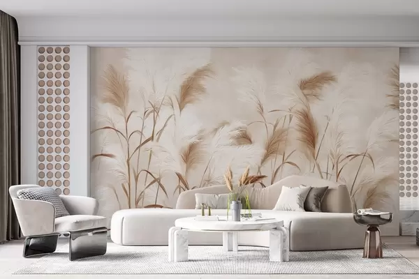 Fototapetes Eleganti pampasa zāles ziedi maigos smilškrāsas un piena toņos Nr. w09150v1