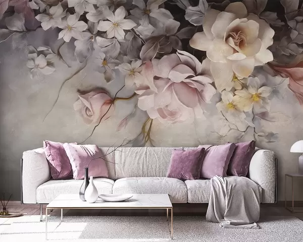 Fototapetes Lieli ziedi karājas pie sienas uz betona fona Nr. w09184