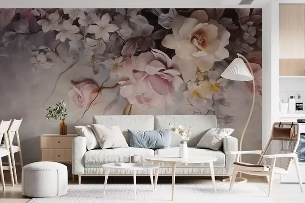 Fototapetes Lieli ziedi karājas pie sienas uz betona fona Nr. w09184