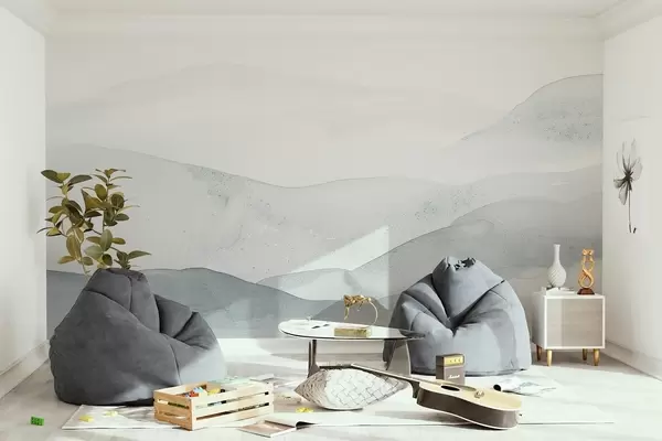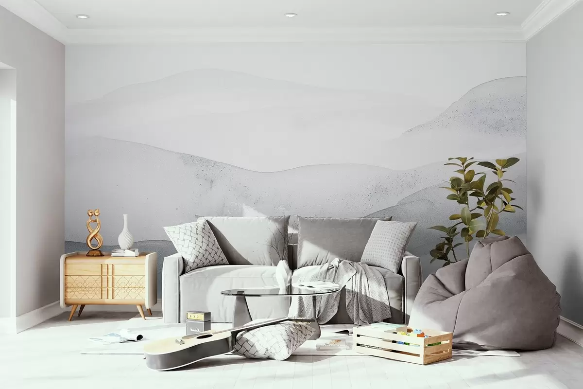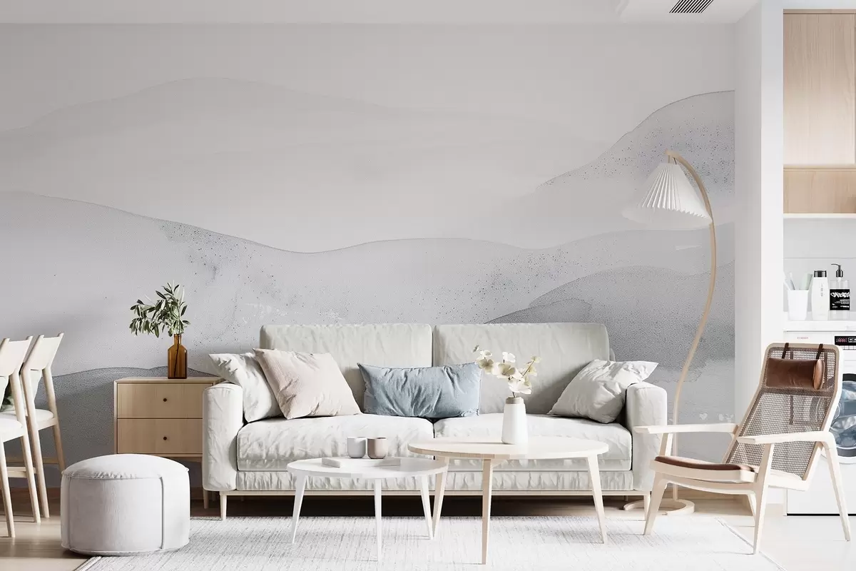 Fototapetes Minimālistiski miglaini kalni maigi zilos toņos Nr. w09223v2