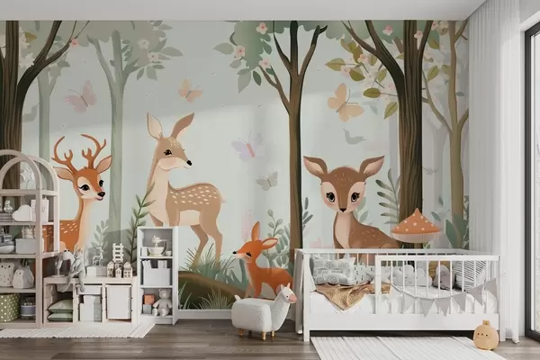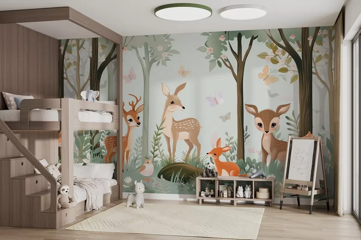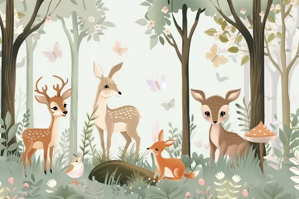Fototapetes Dīvaini meža dzīvnieki zaļos toņos Nr. w09227