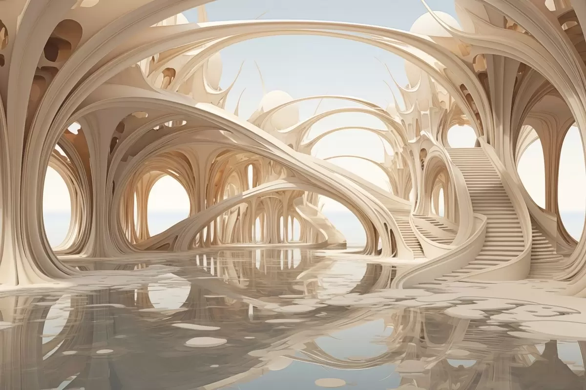 Fototapetes Fantāzijas arhitektūra ar arkām virs ūdens Nr. w09241