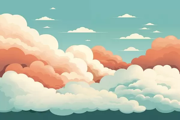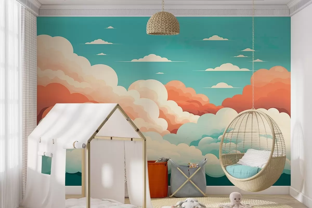 Fototapetes Dīvaini multiplikācijas filmu stila mākoņi zem zilām debesīm Nr. w09246
