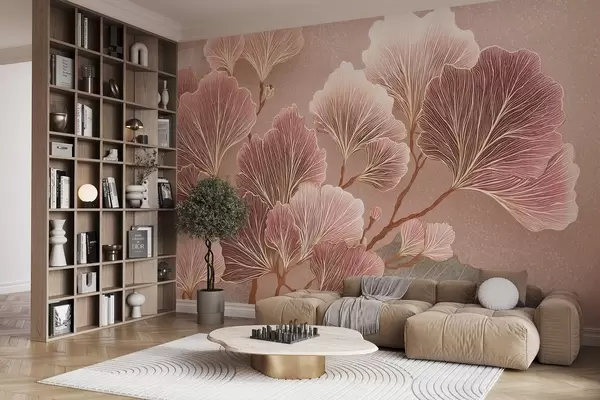 Fototapetes Sārtu un violetu toņu lapu zariņš Nr. w09249
