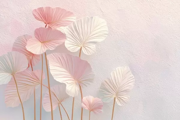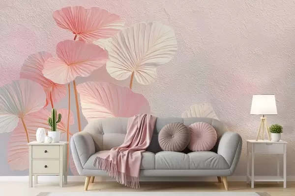 Fototapetes Elegantas lielas tropu lapas maigi rozā un zilos toņos Nr. w09252