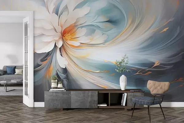 Fototapetes Abstrakts zieds maigos zilos un oranžos toņos Nr. w09270