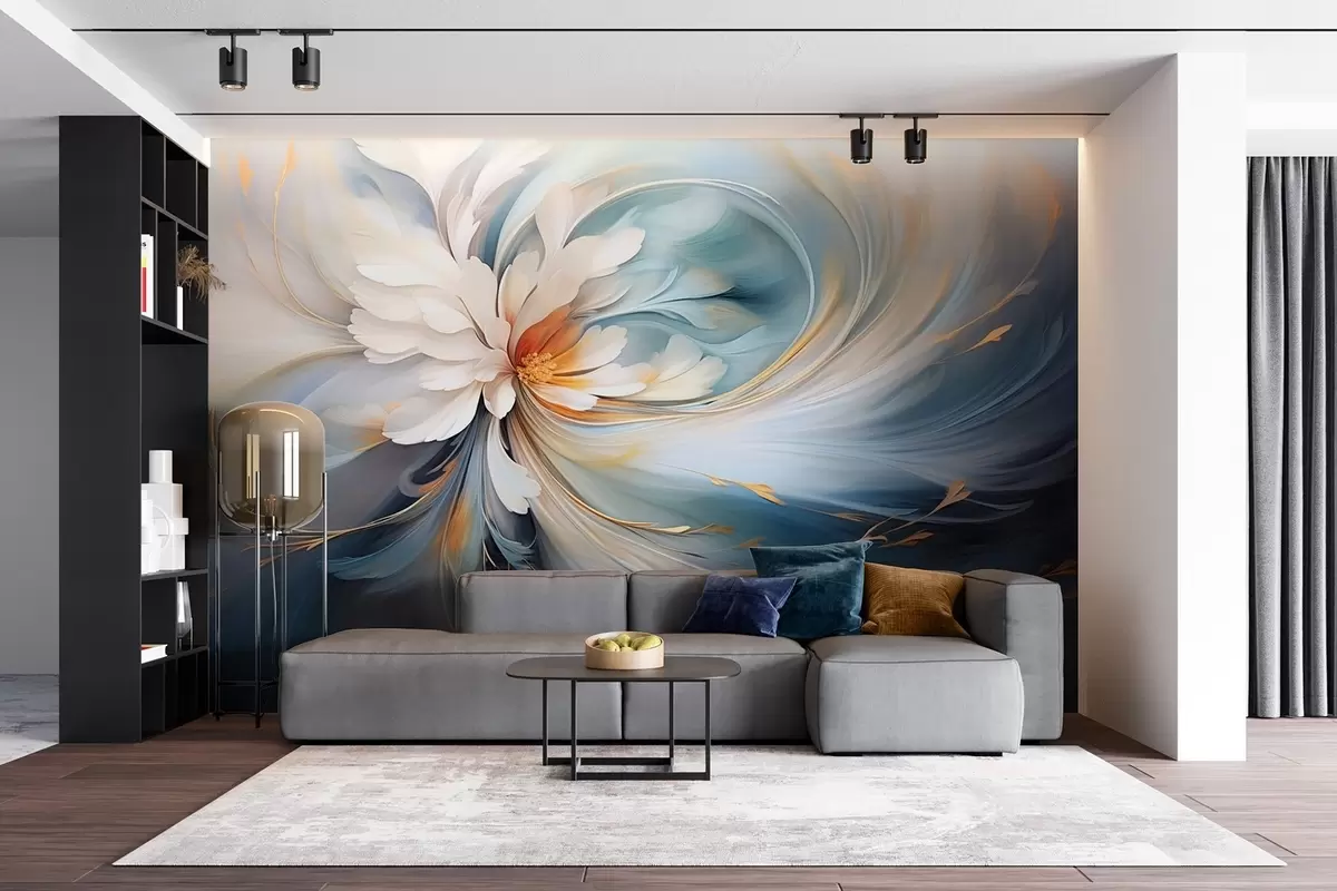 Fototapetes Abstrakts zieds zilos un oranžos toņos Nr. w09270v1